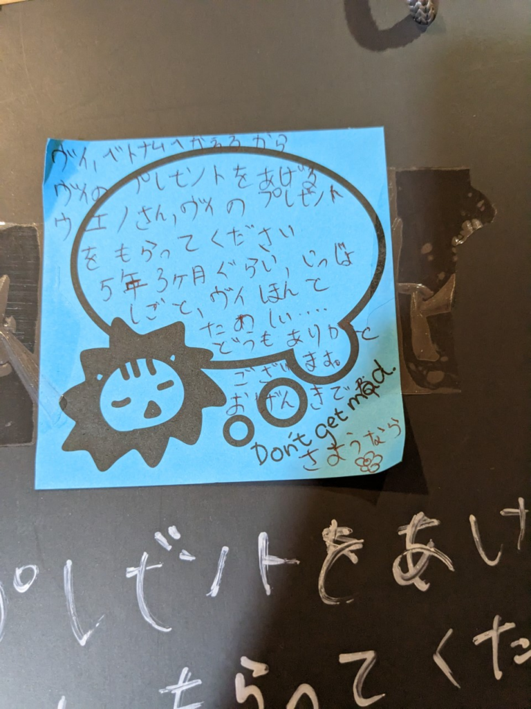 しんどい思いもありますが、帰国していく子供たちからはこんな素敵なプレゼントをもらっています。